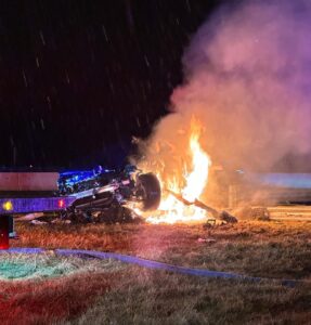 Provisional Fire Chief Tom Purcell reports that the Wakefield Fire Department and mutual aid partners responded to a single-vehicle crash and electric vehicle fire on Interstate 95 on Thursday night.