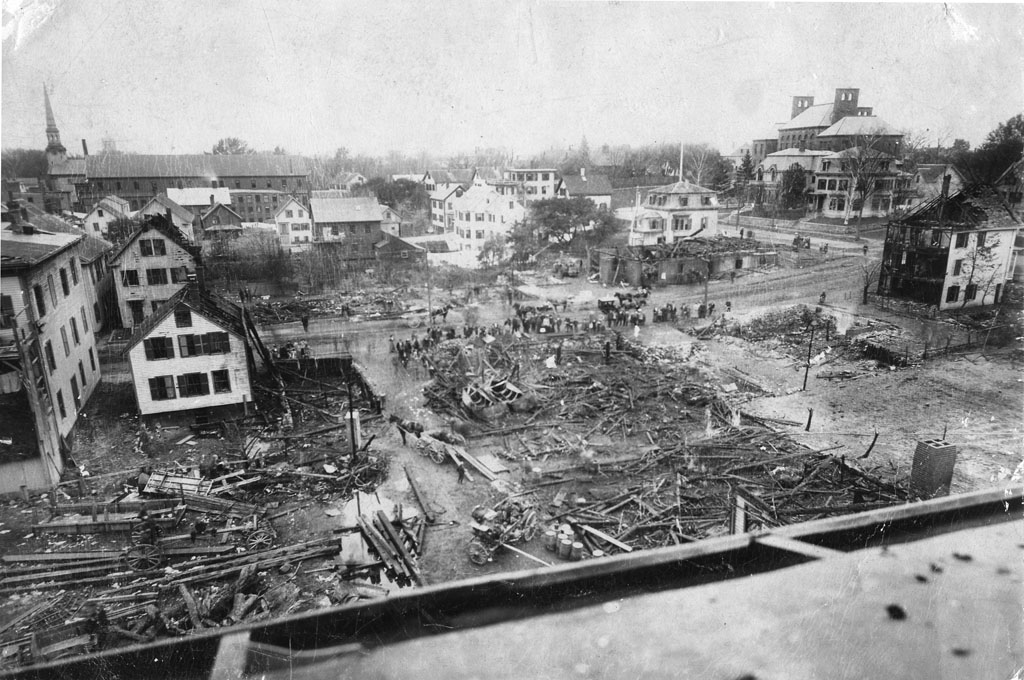 After the destruction of the stable, including thirty-nine horses, the fire consumed a total of 18 buildings on Mechanic Street, Crescent Street and Lincoln Street. Along with the houses, stables, sheds and shops destroyed, the fire also consumed the Central Fire Station, which had been moved and remodeled into a fire station at the corner of Crescent and Mechanic Streets in 1891. Among the losses were the fire alarm system, the 1852 Jeffers hand tub of the former Yale No. 1, stored in the basement, and the 1895 supply wagon.